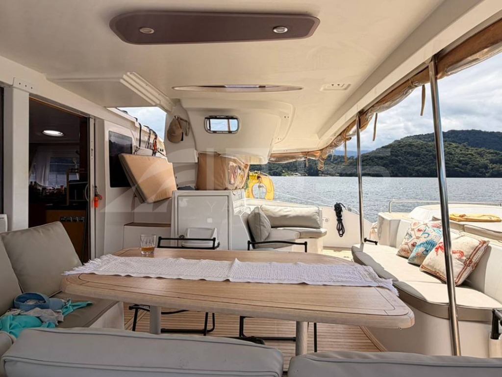 Layout: Cabines: 4 cabines duplas + 4 banheiros