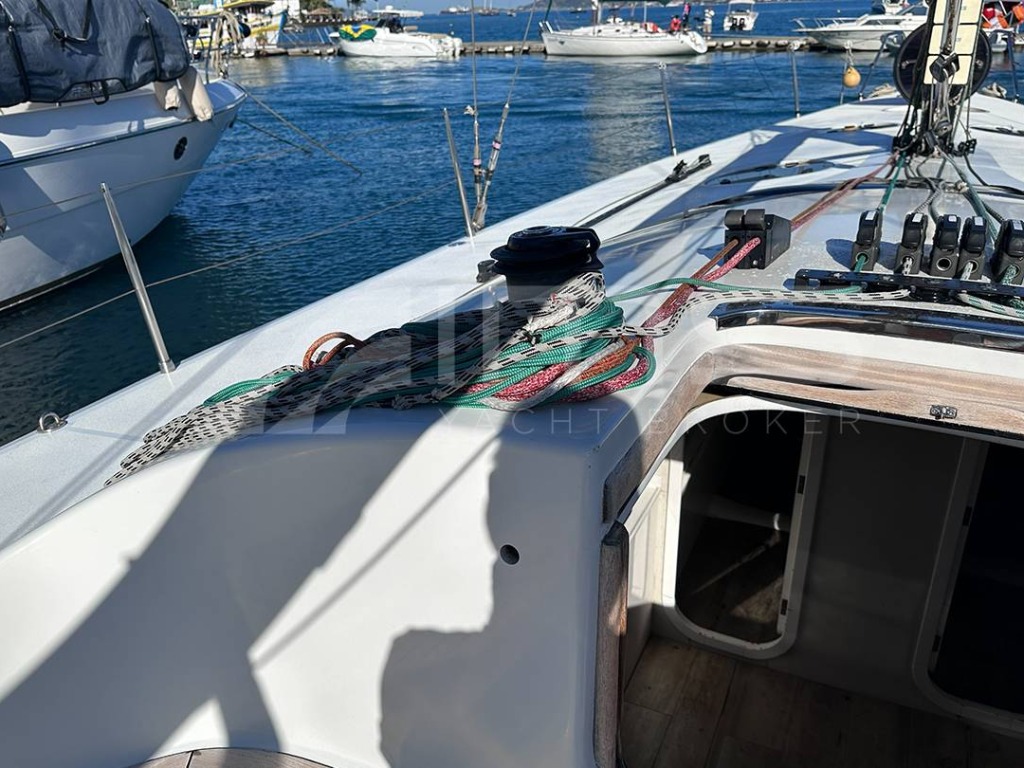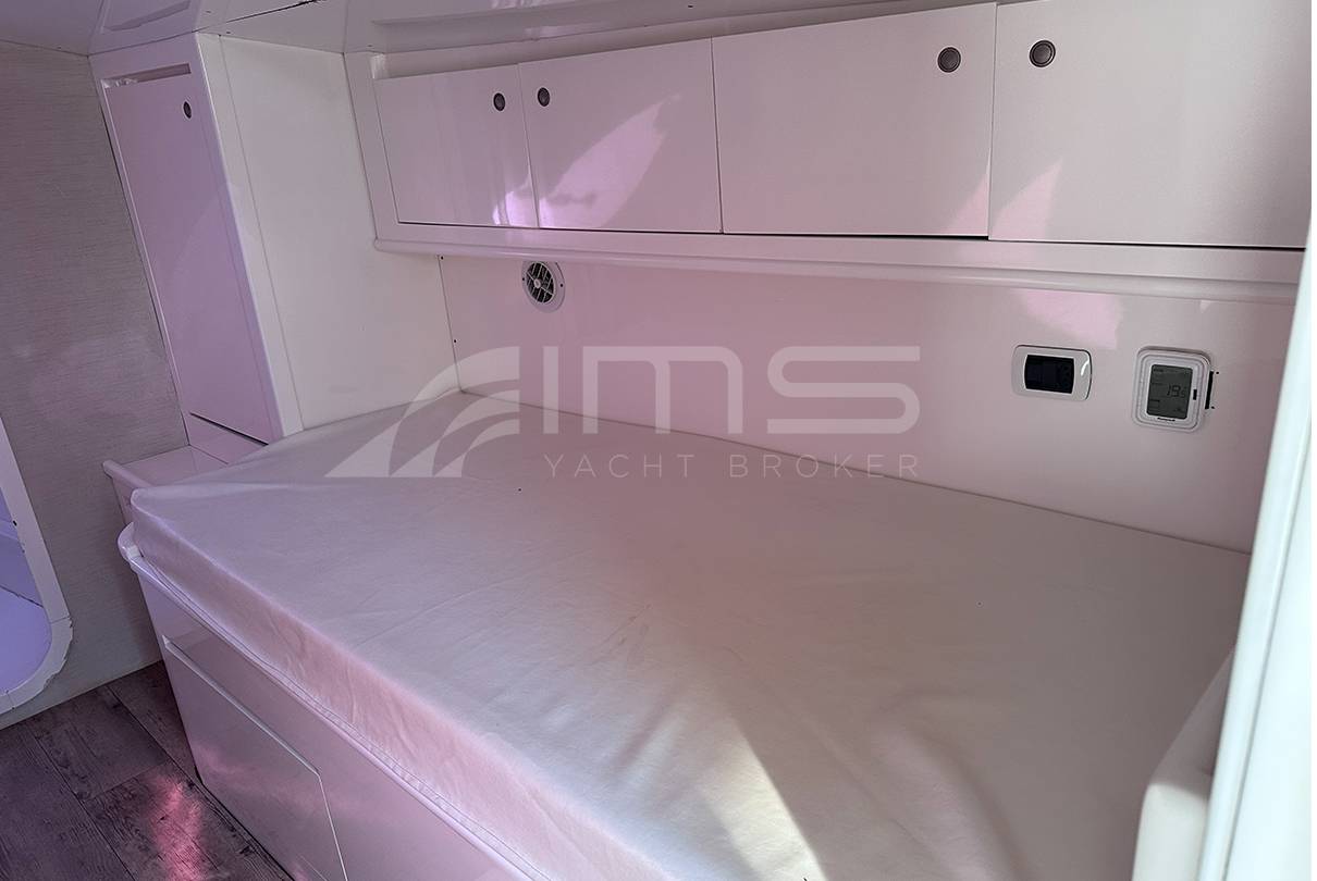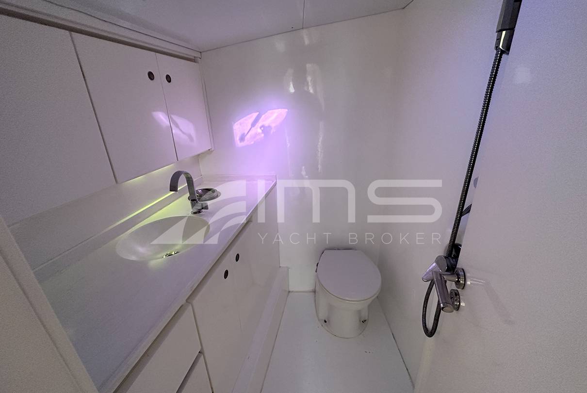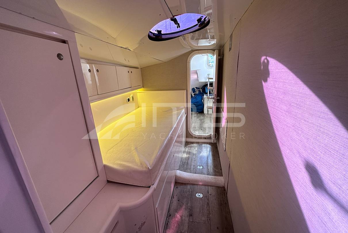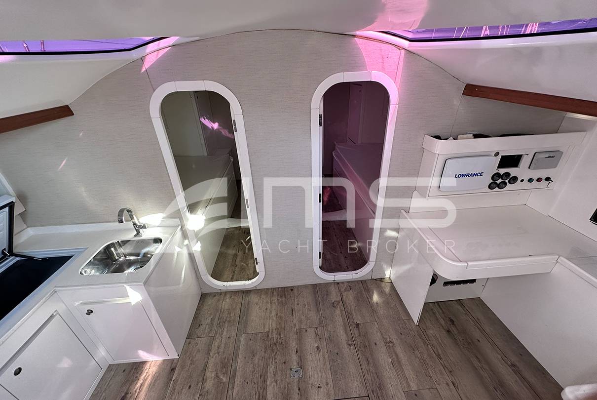 Todo o barco esta construído em fibra de vidro e espuma divinicel, convés revestido em madeira Teka na área do cockpit e pintura em tinta poliuretano PU, anti derrapante griptex, pintura de fundo com tinta anti incrustante.Informações Adicionais