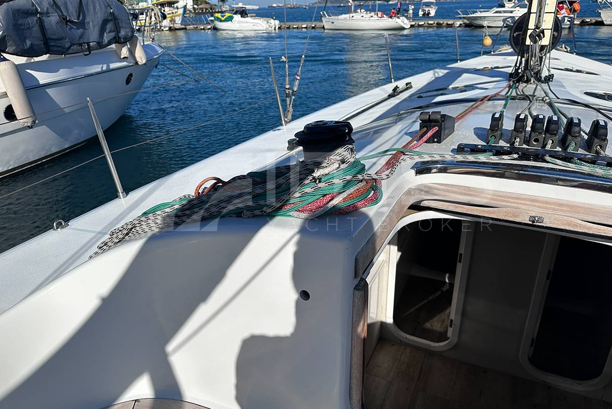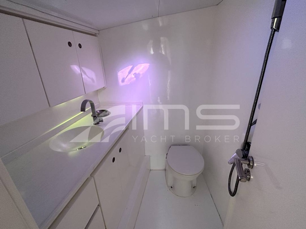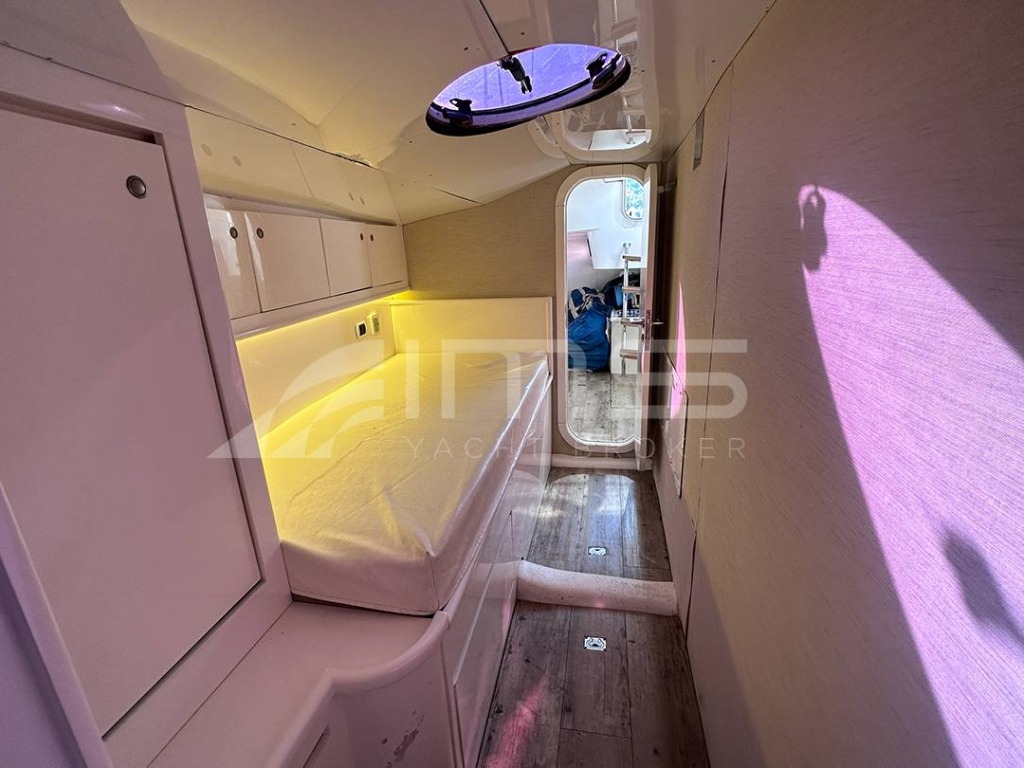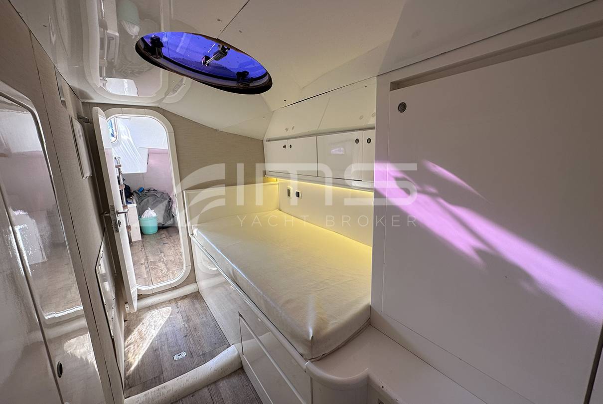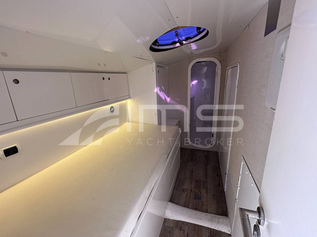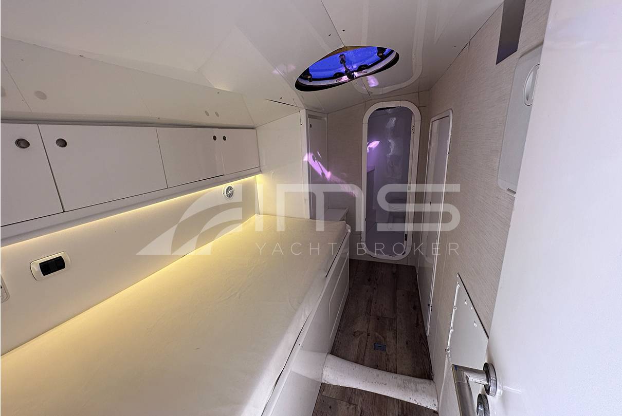 Todo o barco esta construído em fibra de vidro e espuma divinicel, convés revestido em madeira Teka na área do cockpit e pintura em tinta poliuretano PU, anti derrapante griptex, pintura de fundo com tinta anti incrustante.Informações Adicionais