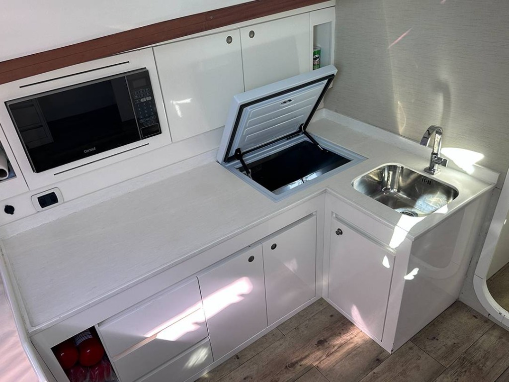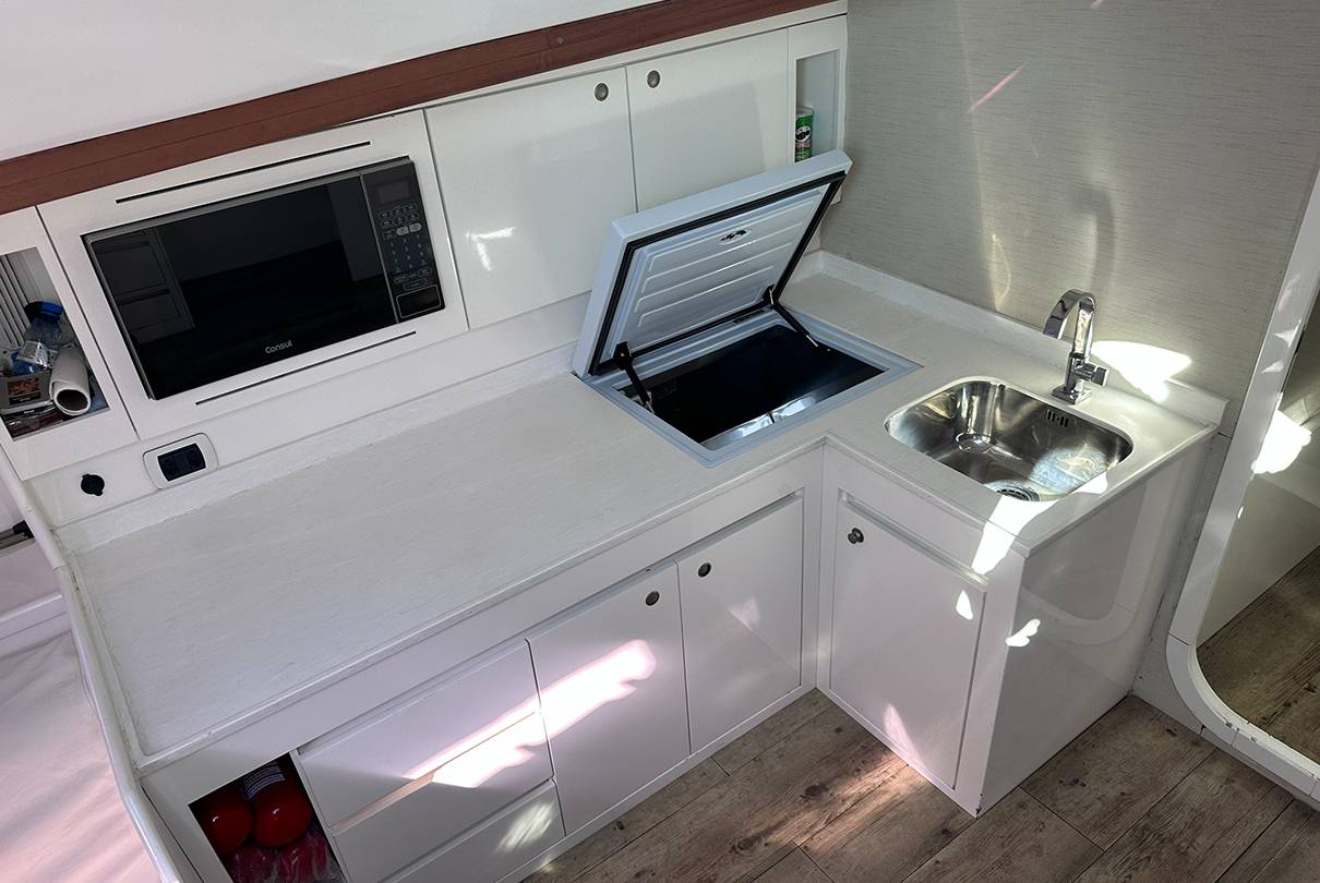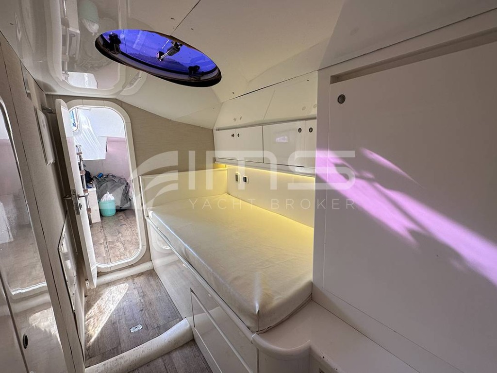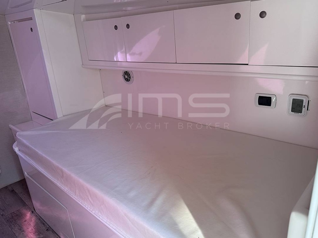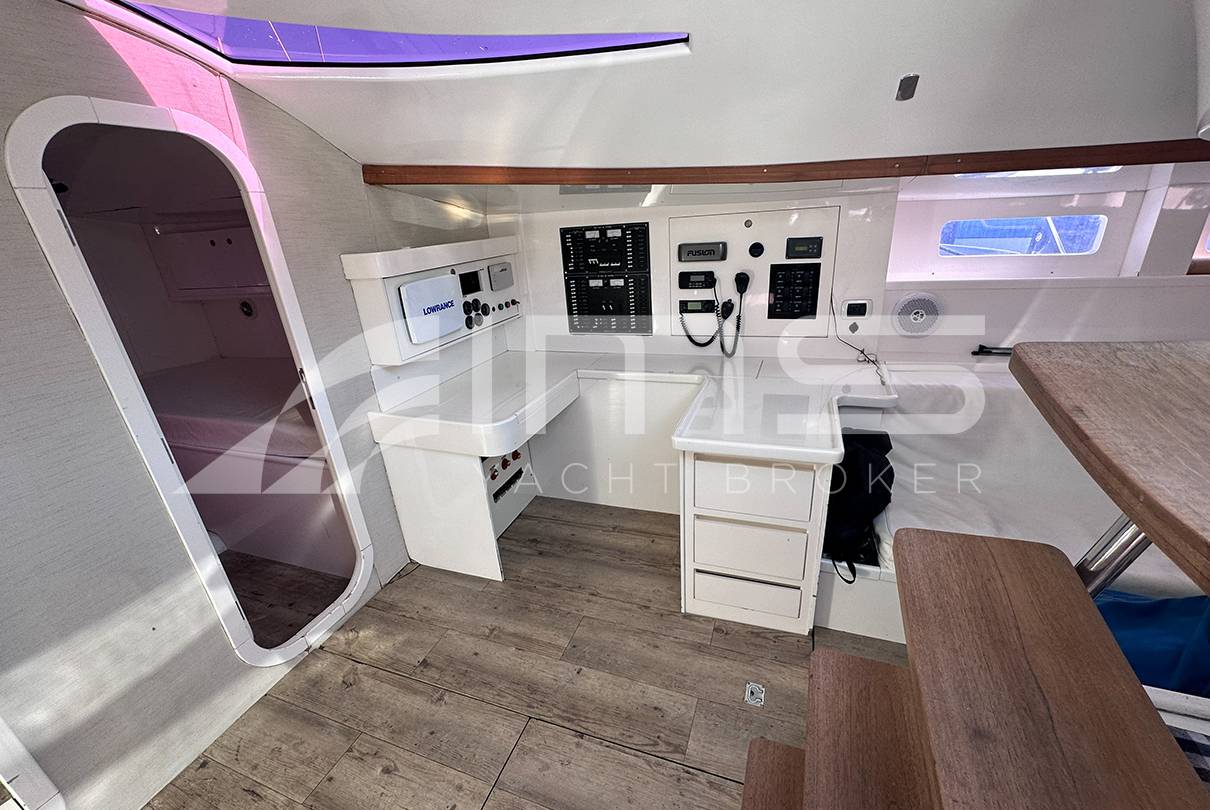 Todo o barco esta construído em fibra de vidro e espuma divinicel, convés revestido em madeira Teka na área do cockpit e pintura em tinta poliuretano PU, anti derrapante griptex, pintura de fundo com tinta anti incrustante.Informações Adicionais